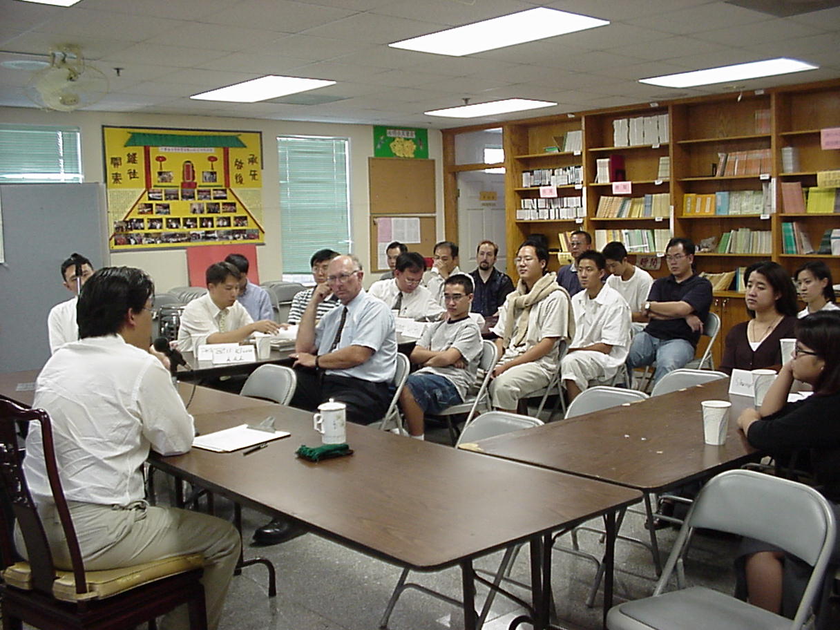 "mini" English Dharma Meeting A "mini" English Dharma Meeting was successfully held on July 22-23, 2000 at Kuang Ming Saint Tao Temple. Three official class members graduated, one lady and two gentlemen. Let's all congratulate them on the completion of the Dharma Meeting and